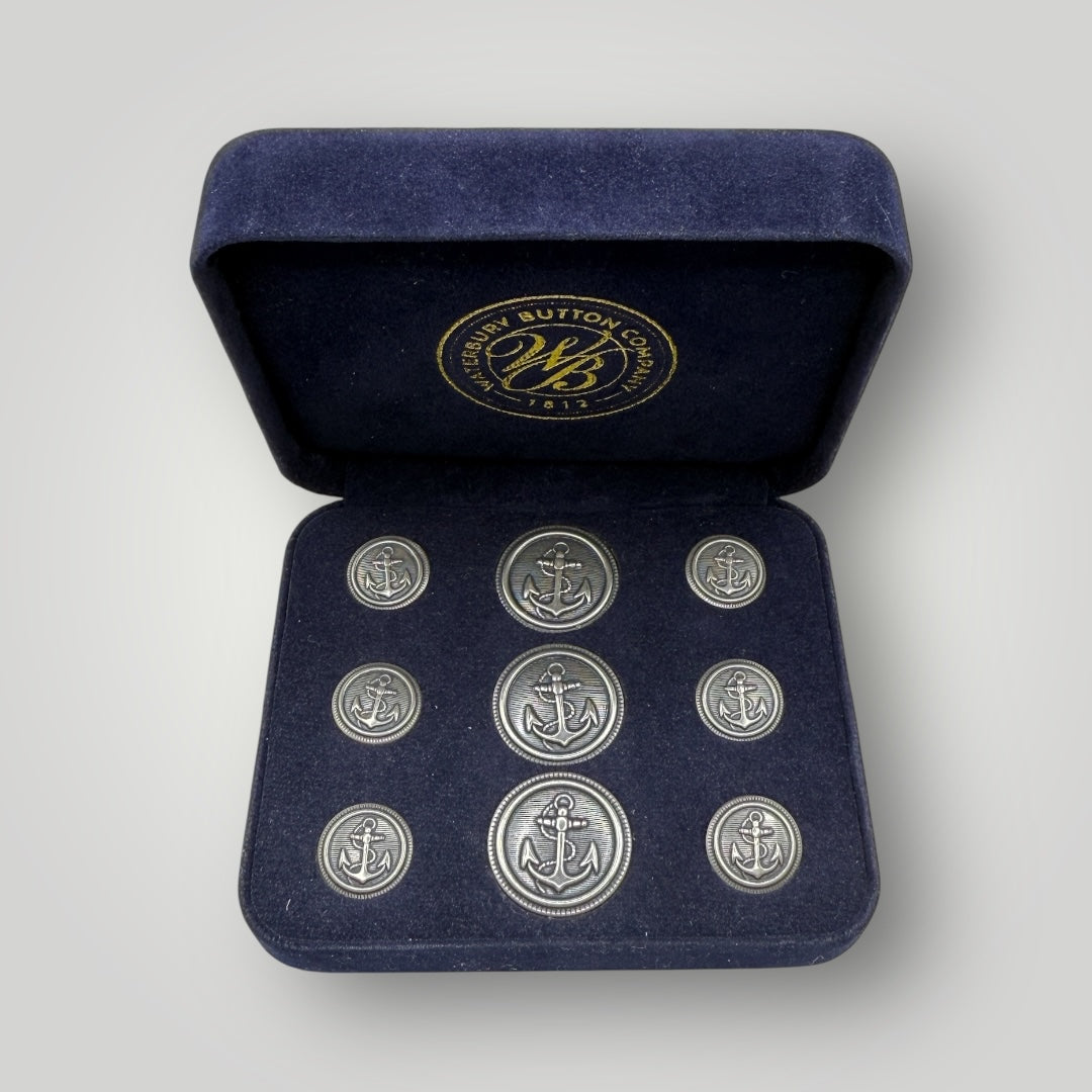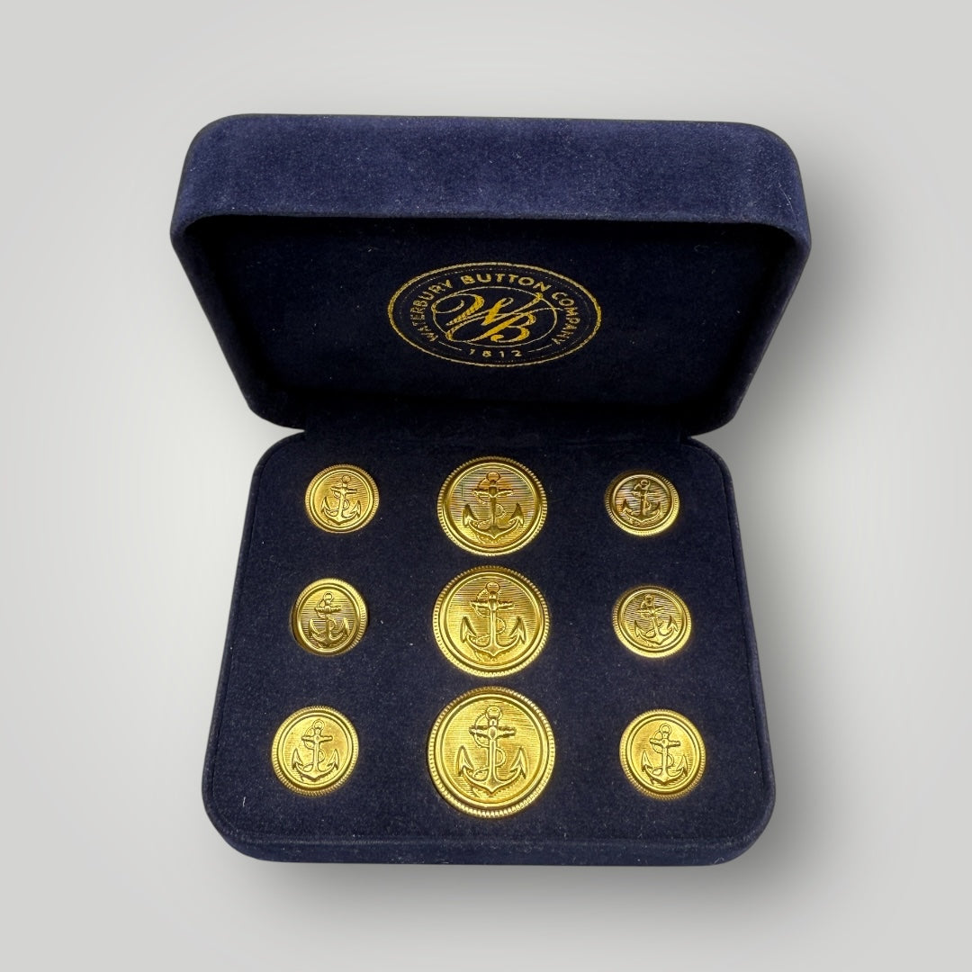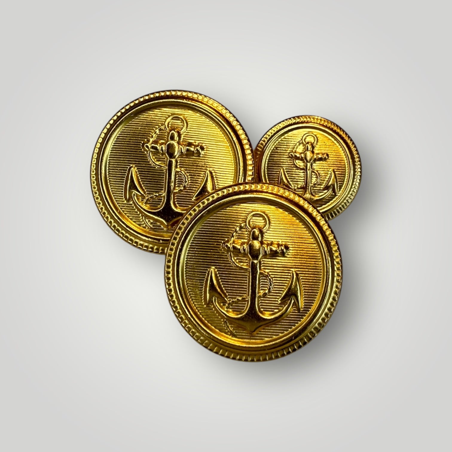 Drop anchor in style with these classic Anchor buttons and cufflinks, displaying the timeless anchor symbol that represents strength, stability, and maritime tradition. This design celebrates the deep connection between America and the sea, honoring both our naval heritage and the maritime communities that have shaped our coastal culture. Available as gold or silver cufflinks and button sets.