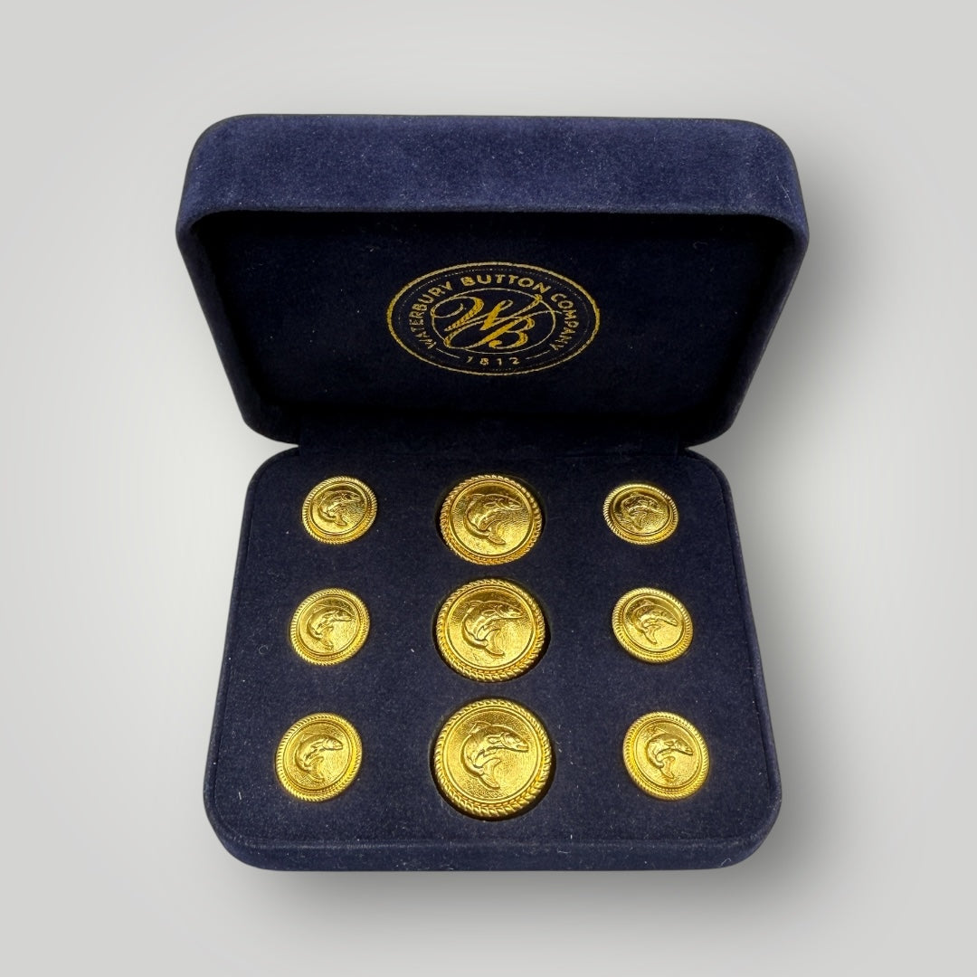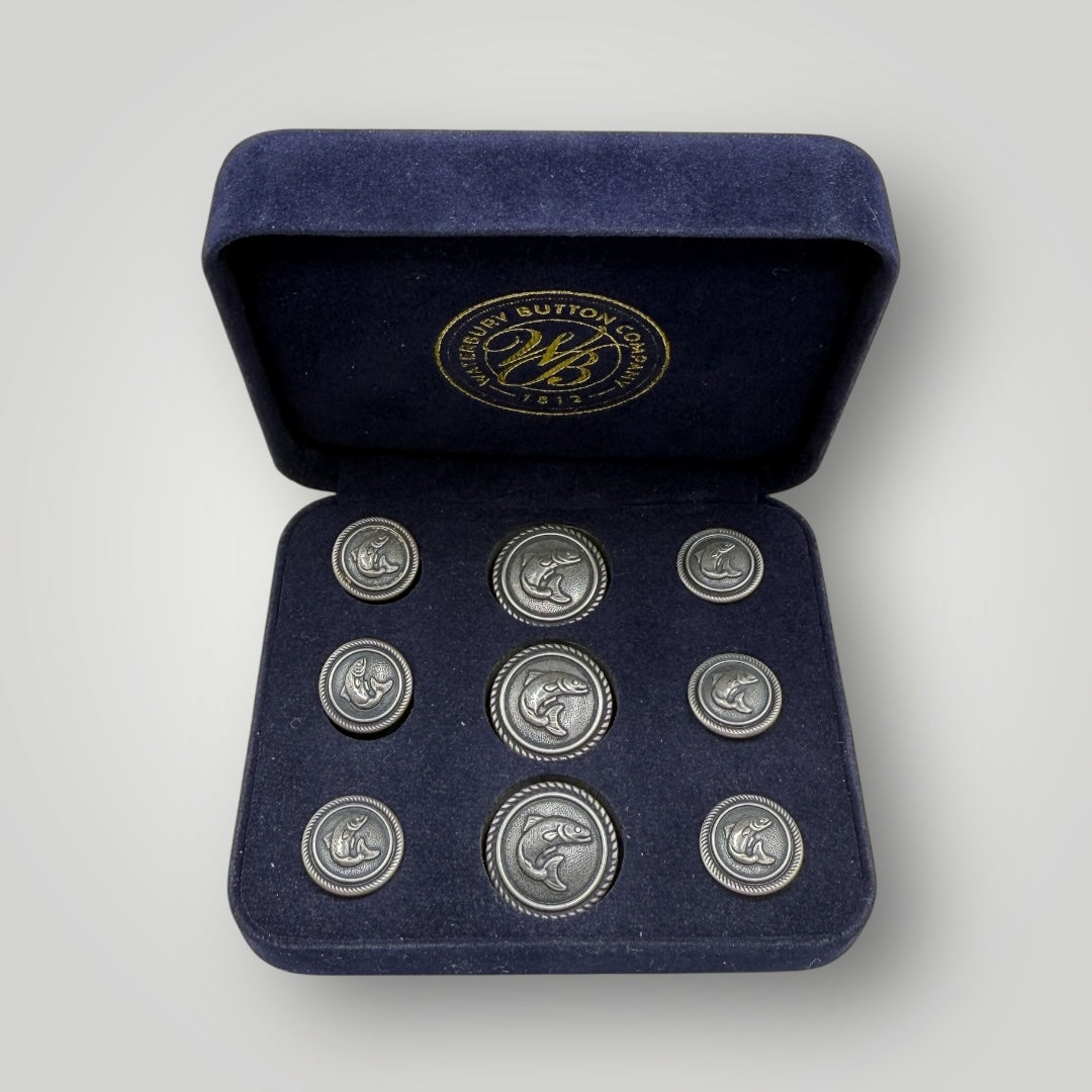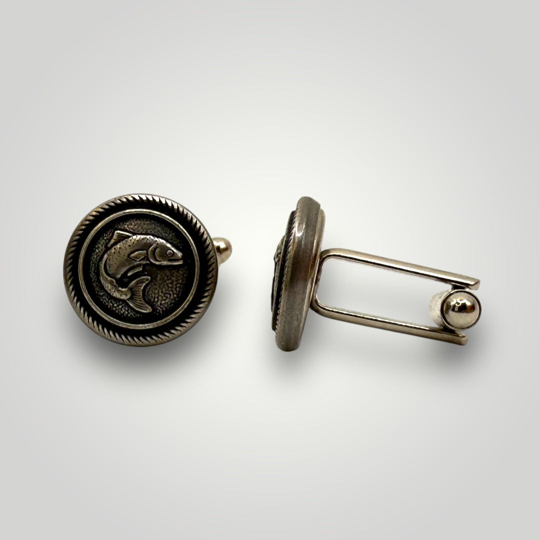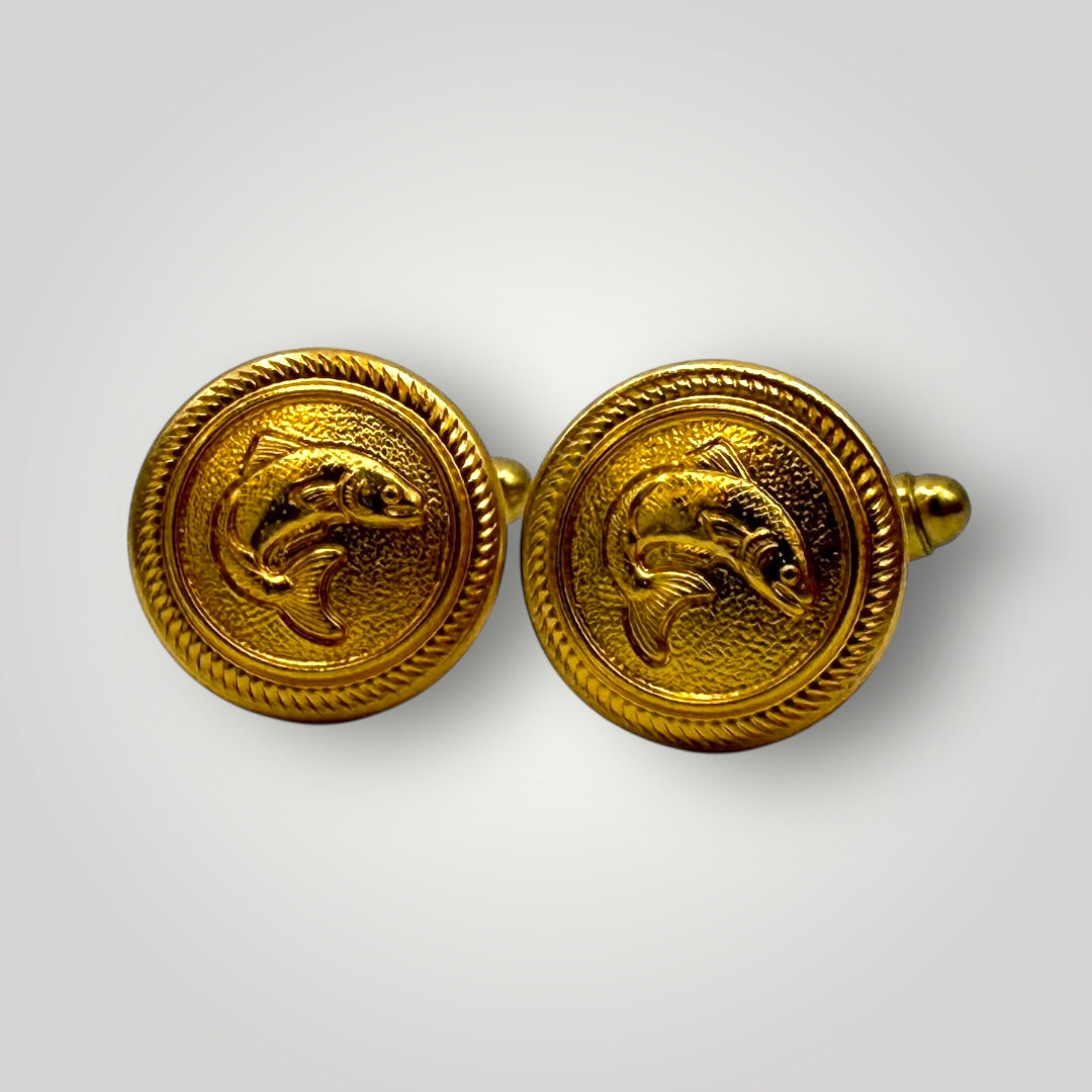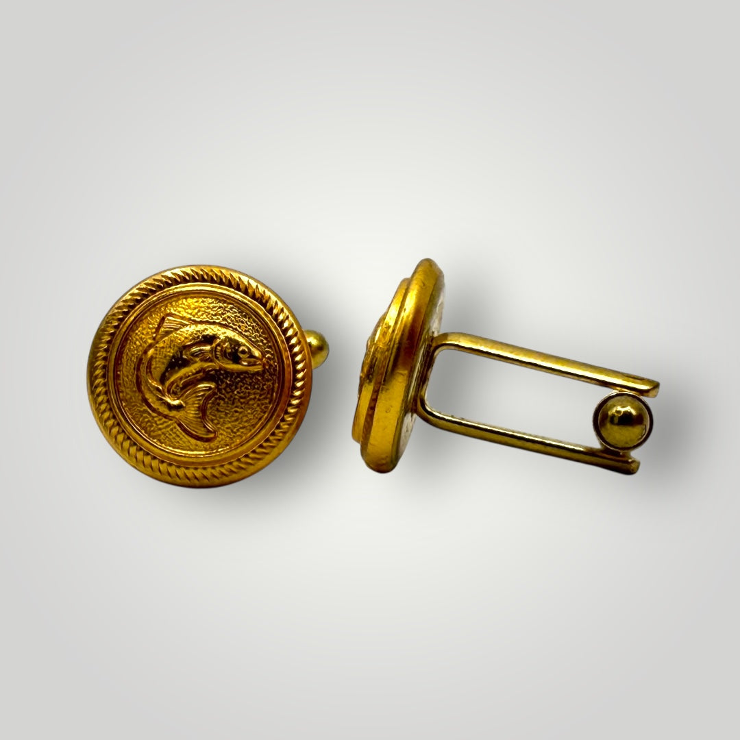 Cast your style with these beautifully crafted Fish buttons and cufflinks, perfect for anglers and outdoor adventurers. This elegant design celebrates the patience, skill, and connection with nature that defines the fishing experience, making it an ideal accessory for those who find peace and excitement on the water. Available as gold or silver cufflinks and button sets.