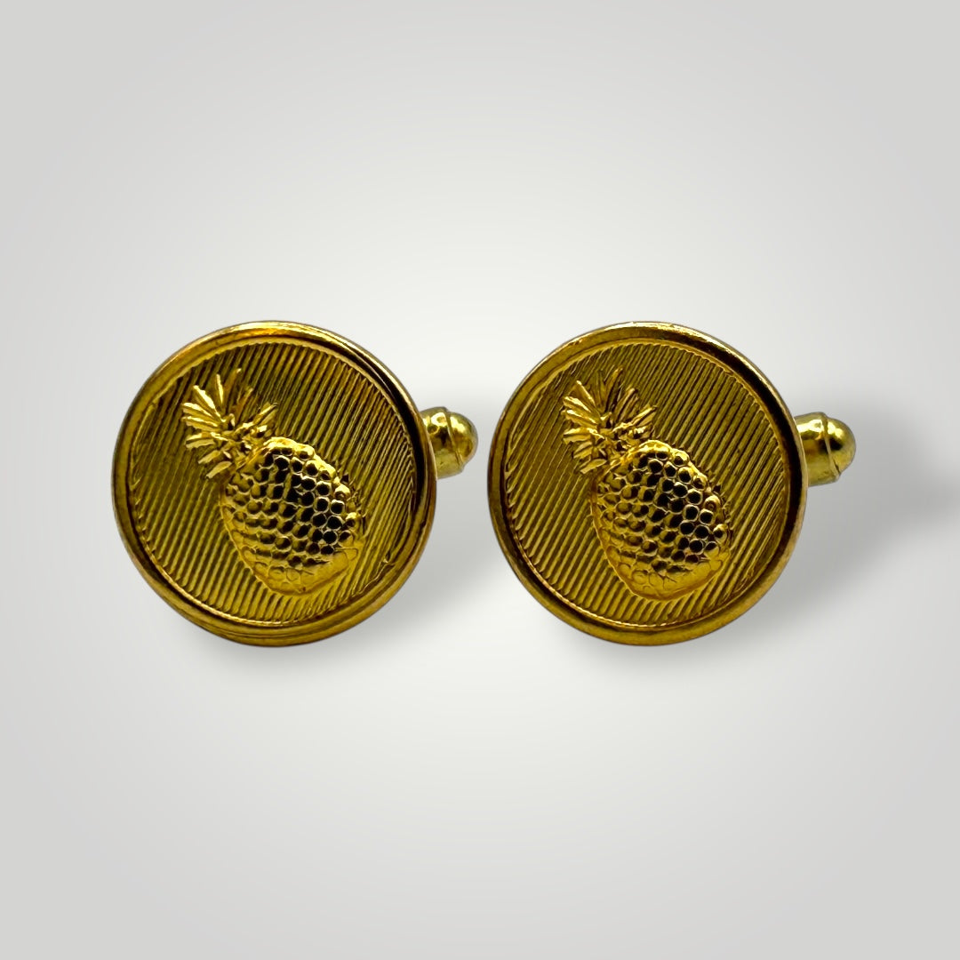 Welcome guests in style with these charming Pineapple buttons and cufflinks, featuring the timeless symbol of hospitality, warmth, and welcome. This handcrafted Waterbury Button original represents the Southern tradition of gracious hospitality and the universal symbol of welcoming friendship that makes every gathering special. Available as gold or silver cufflinks and button sets.