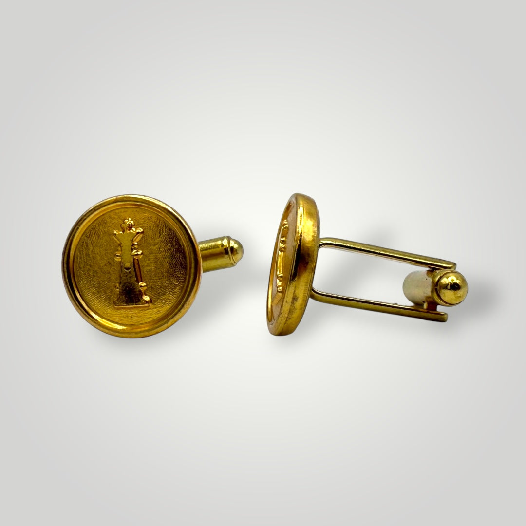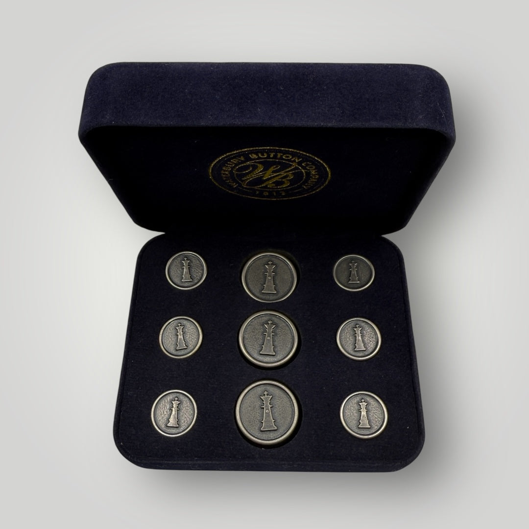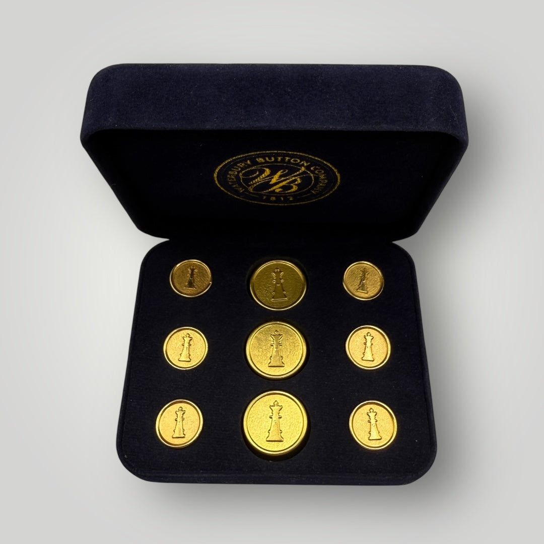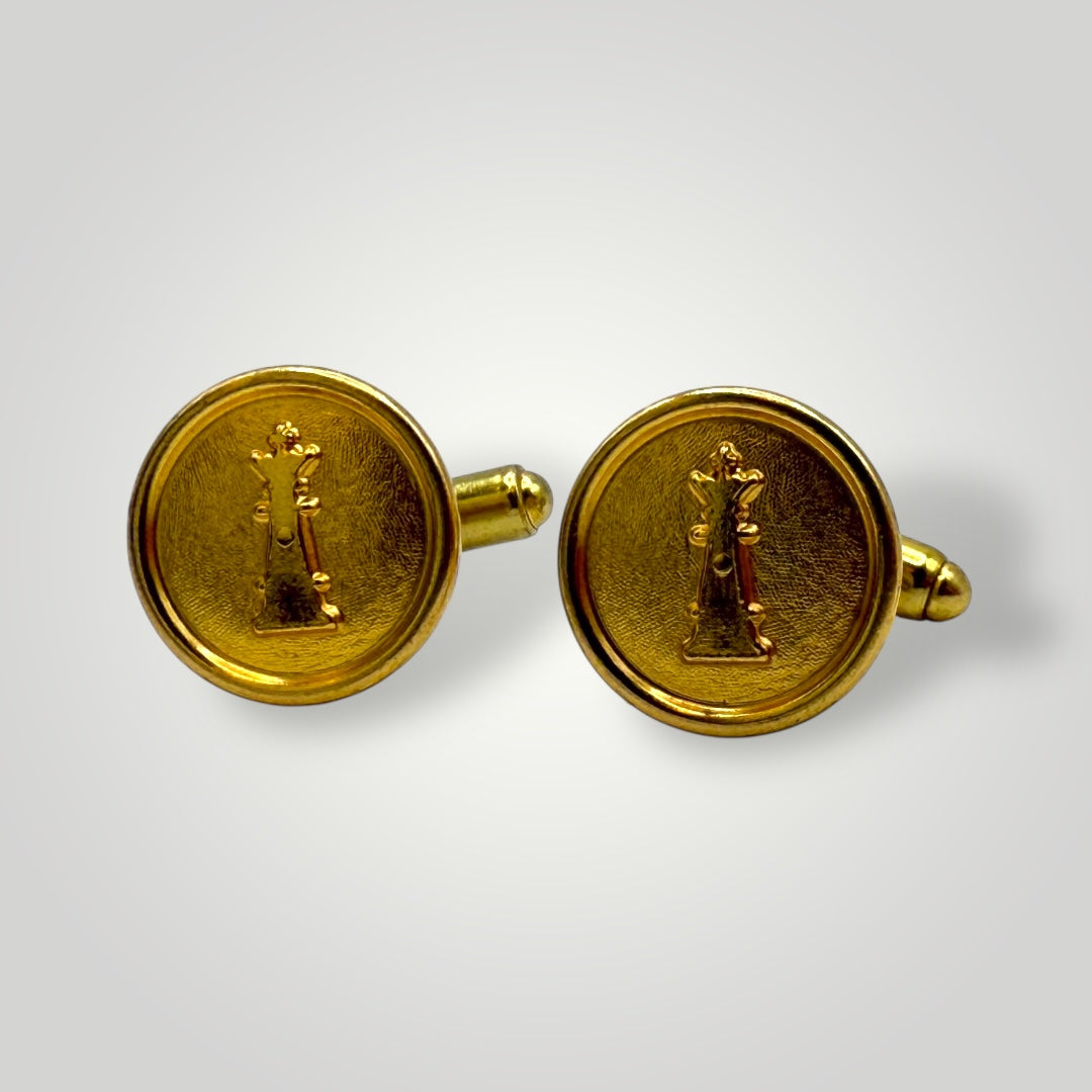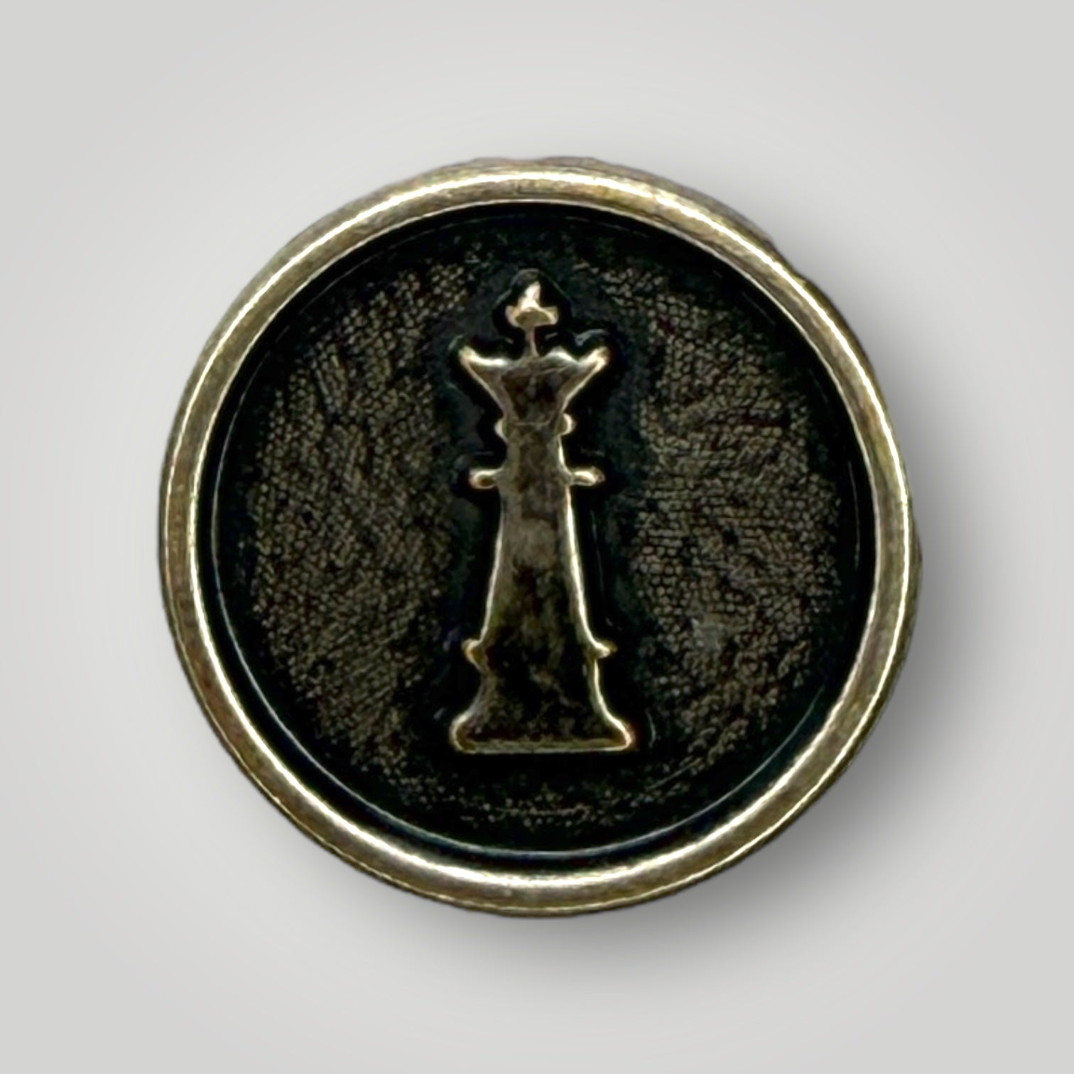 Make your strategic move with these sophisticated Queen chess piece buttons and cufflinks, featuring a hand-crafted depiction of the most powerful piece on the chessboard. This unique design symbolizes strength, versatility, and strategic thinking, making it perfect for chess enthusiasts, strategic thinkers, and those who appreciate intellectual pursuits. Available as gold or silver cufflinks and button sets.
