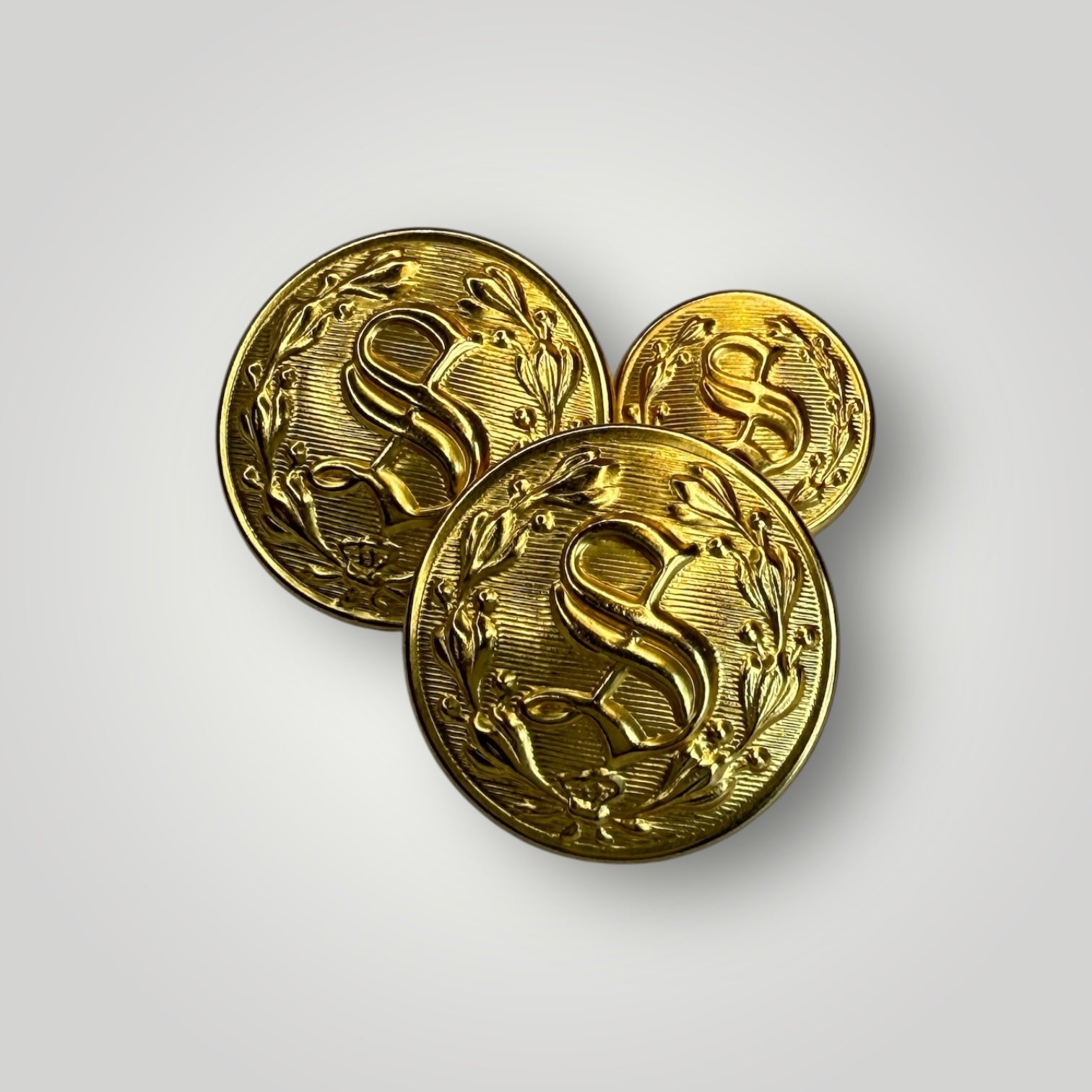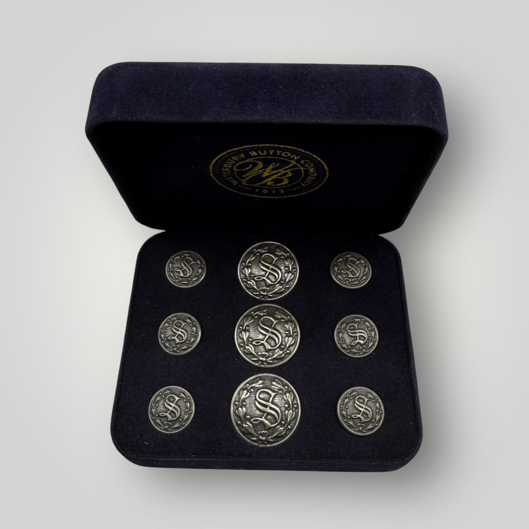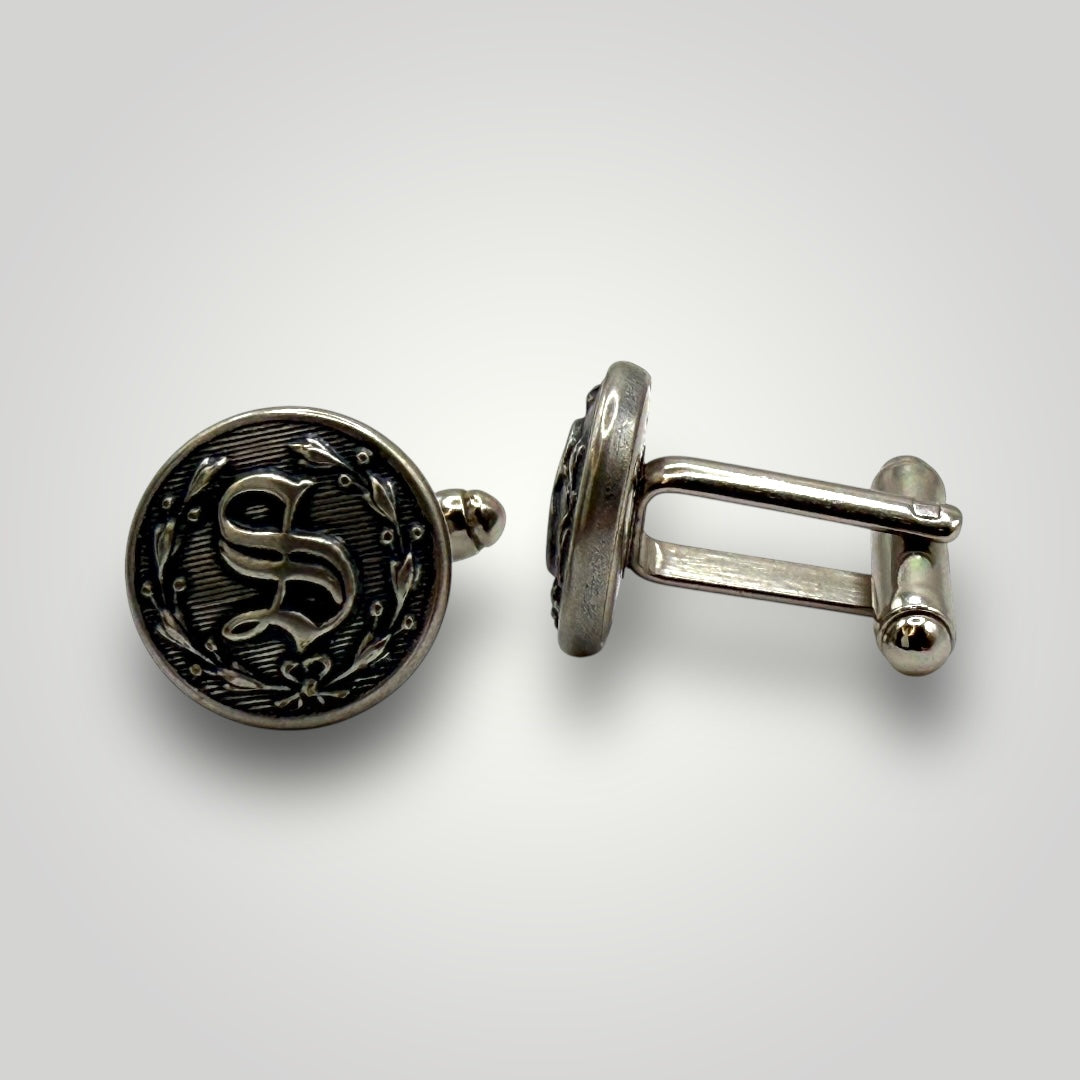 Celebrate the proud tradition of America's sheriffs with these elegant "S" buttons and cufflinks, featuring a beautifully monogrammed "S" surrounded by a laurel wreath. This iconic design is estimated to have been adopted by police departments in the late 1800's, and today adorns our Sheriff's nationwide. Handcrafted by Waterbury Button Company, these buttons honor the sheriffs who lead our law enforcement agencies with dedication, integrity, and unwavering commitment to justice. Available as gold or silver cufflinks and button sets.