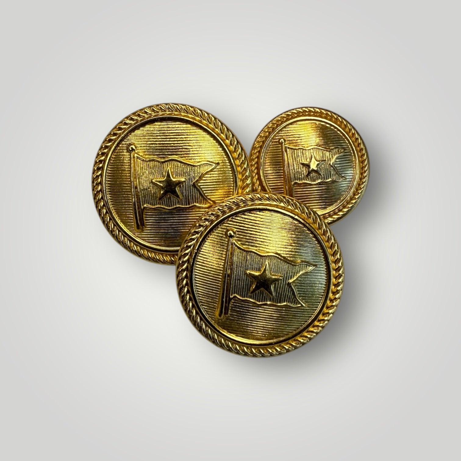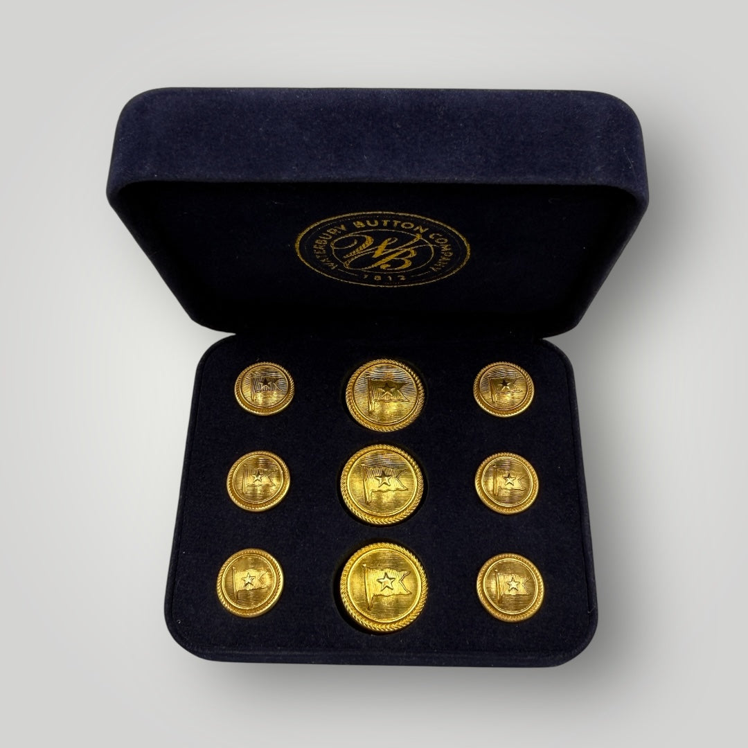 Own a piece of maritime history with these iconic White Star Line buttons and cufflinks, featuring the legendary emblem of the company behind the RMS Titanic. The Waterbury Button Company supplied this very design to crew members on the fateful voyage in 1912. These handcrafted buttons connect you to one of history's most famous ocean liners and the golden age of transatlantic travel. Available as gold or silver cufflinks and button sets.