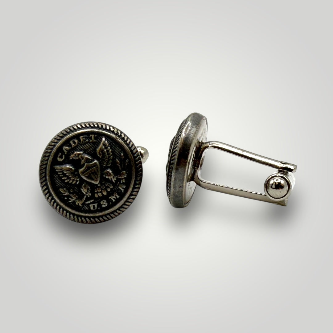Honor the tradition of America's premier military academy with these authentic vintage West Point USMA cadet buttons and cufflinks. These out-of-specification military academy buttons feature the distinguished eagle on shield design framed by laurel branches - symbols of tradition, honor, and academic excellence that define the West Point experience and the "Long Gray Line." Available as gold or silver cufflinks and button sets.