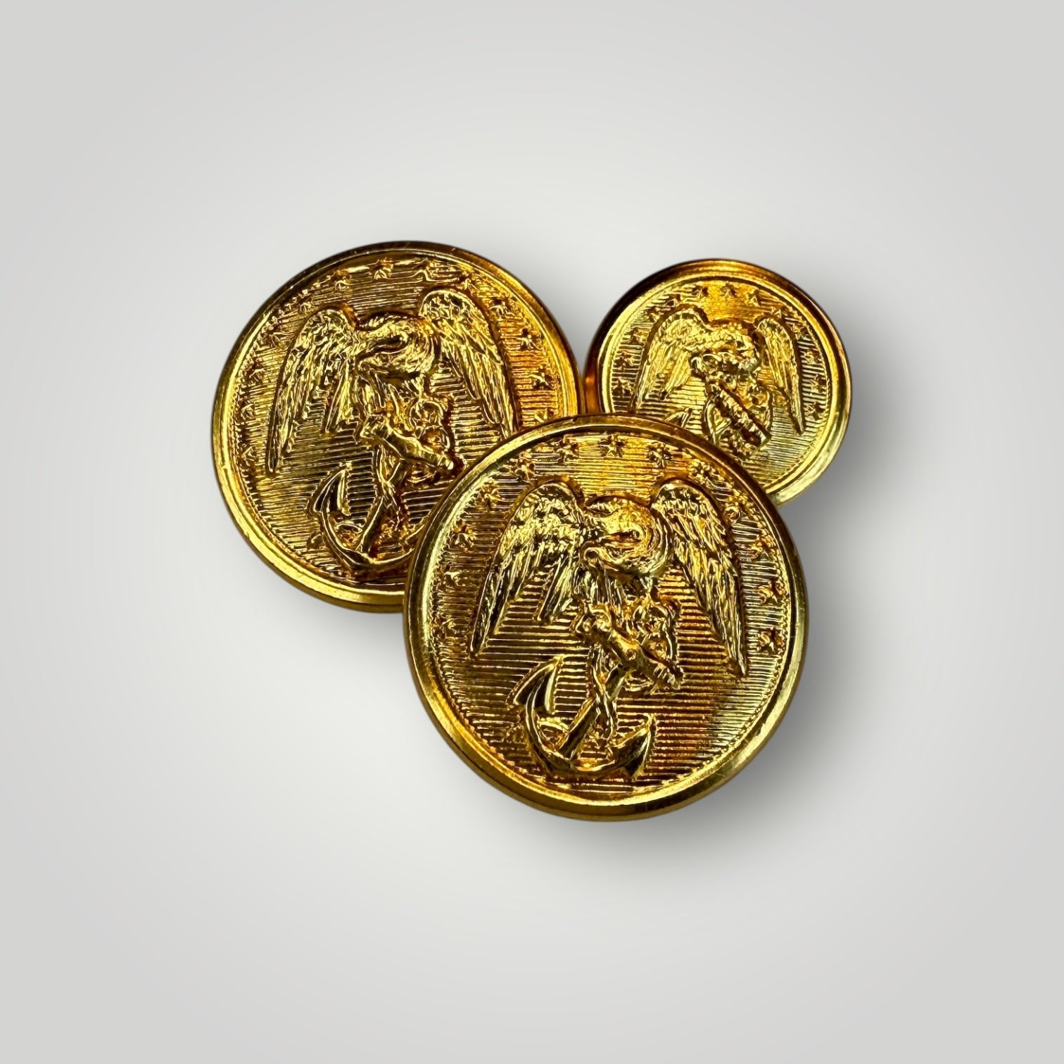 Semper Fi! Honor the proud tradition of the U.S. Marine Corps with these authentic vintage USMC button and cufflink design featuring the iconic Eagle, Globe, and Anchor emblem. The current version of the button has a lot of similarities but differs in size, dome height, and subtle changes of design on the eagle and anchor. These out-of-specification late 19th century Marine buttons represent the unwavering dedication and naval heritage of America's finest fighting force. Available as gold or silver cufflinks and button sets.